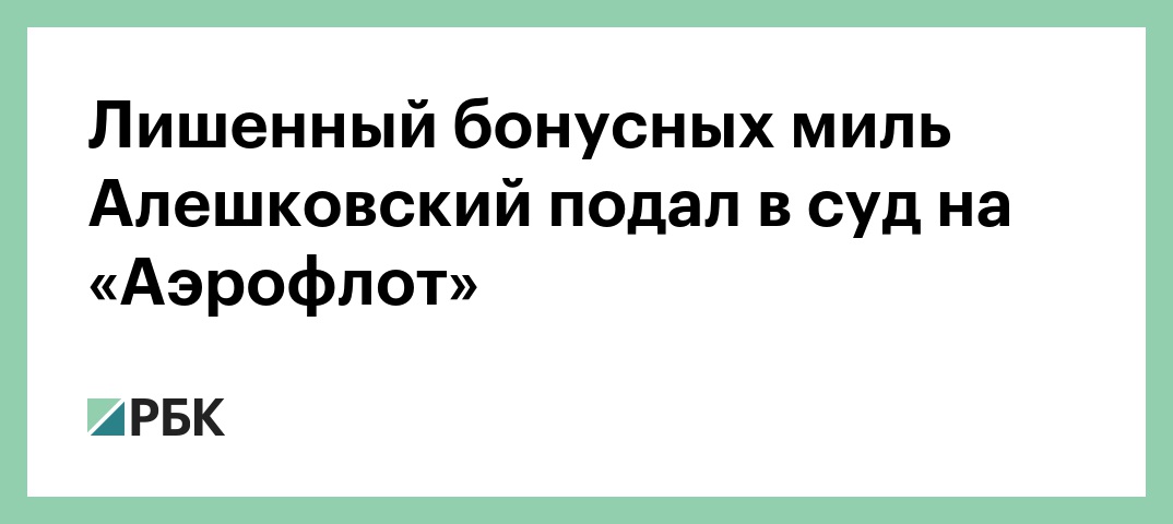 Лишенный бонусных миль Алешковский подал в суд на «Аэрофлот»