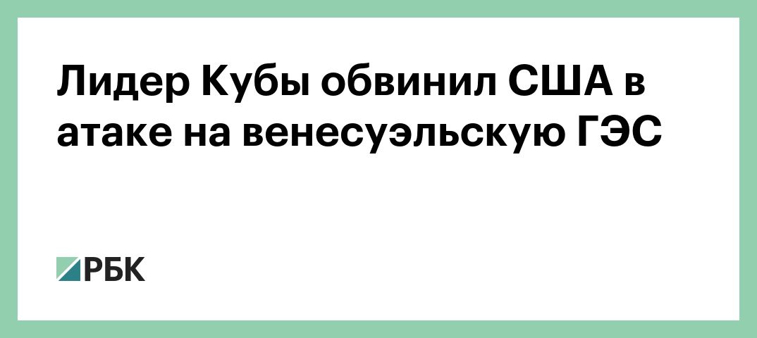 Председатель Госсовета и Совета министров Кубы Мигель Диас-Канель назвал актом агрессии США саботаж, произошедший в Венесуэле на гидроэлектростанции в четверг, в результате которого большая часть страны осталась без электричества. Об этом кубинский политик написал на своей странице в Twitter.
