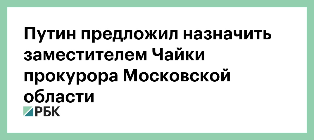 Путин предложил назначить заместителем Чайки прокурора Московской области
