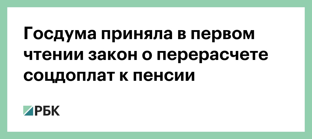 Законопроект о перерасчете социальных надбавок к пенсии одобрен в первом чтении, об этом сообщается на сайте нижней палаты.
