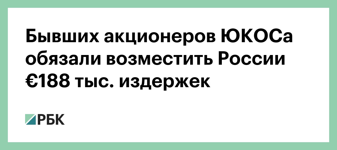 Суд в Берлине обязал бывших акционеров компании «Халли Энтерпрайсиз Лдт.», связанной с компанией ЮКОС, возместить России судебные издержки на сумму €188 тыс. Об этом говорится в поступившем в РБКсообщении Международного центра правовой защиты, который представлял интересы России.