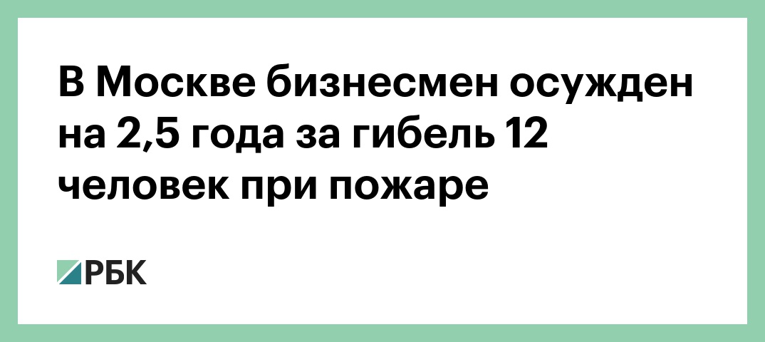 В Москве бизнесмен осужден на 2,5 года за гибель 12 человек при пожаре