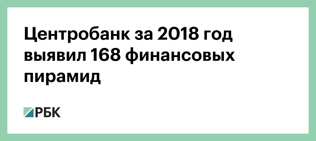 Центробанк за 2018 год выявил 168 финансовых пирамид