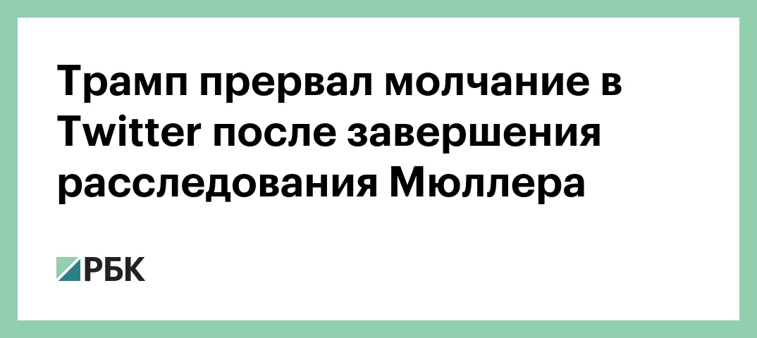 Издание The Hill обращает внимание, что Трамп сделал публикации в Twitter впервые с тех пор, как стало известно о завершении расследования спецпрокурора Роберта Мюллера, посвященного предполагаемому вмешательству России в выборы в США.