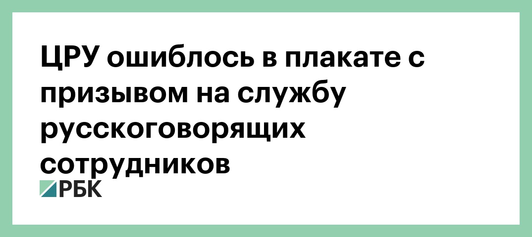 Центральное разведывательное управление США (Central Intelligence Agency) в Вашингтоне допустило ошибку в рекламном плакате, призывающем на службу русскоговорящих сотрудников. На нее обратили внимание пользователи социальных сетей.