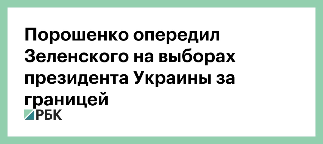 По данным центризбиркома, за Порошенко отдали голоса более 38,7% избирателей за границей. Второе место занял Зеленский, получив 25,8% голосов, третье — бывший министр обороны Украины Анатолий Гриценко с 10,25%.