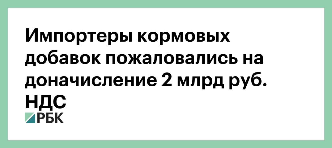 Но с 2017 года Федеральная таможенная служба стала требовать от импортеров кормовых добавок пересчитать НДС с 10 на 18% и выплатить разницу за последние три года, пишет Гордееву Злочевский (копия письма от 23 марта 2019 года есть у РБК). Различный подход ФТС и импортеров кормовых добавок при расчете НДС может стоить последним 2 млрд руб., приводятся в письме расчеты на основе оценок Минфина.