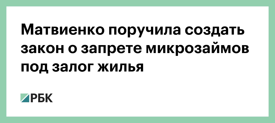 «Очень важное предложение — запретить выдавать микрофинансовые кредиты под залог жилья, нужно внести на это запрет. Прошу без потери времени приступить к выработке такого законопроекта», — сказала Матвиенко.