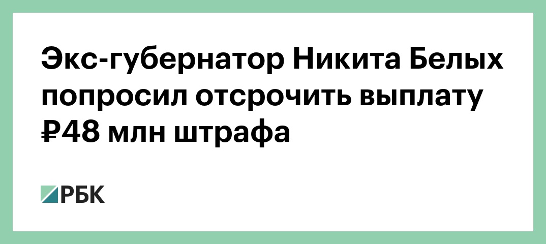 «На прошлой неделе я обратился в суд с ходатайством по просьбе Никиты Белых, которая заключается в том, чтобы на основании норм УПК предоставить отсрочку исполнения приговора в части уплаты штрафа в размере 48 млн руб.», — сообщил он.