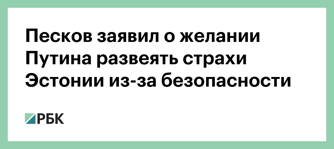 Песков заявил о желании Путина развеять страхи Эстонии из-за безопасности