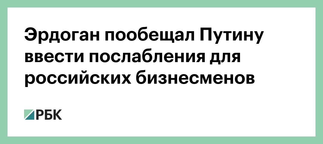 Эрдоган пообещал Путину ввести послабления для российских бизнесменов