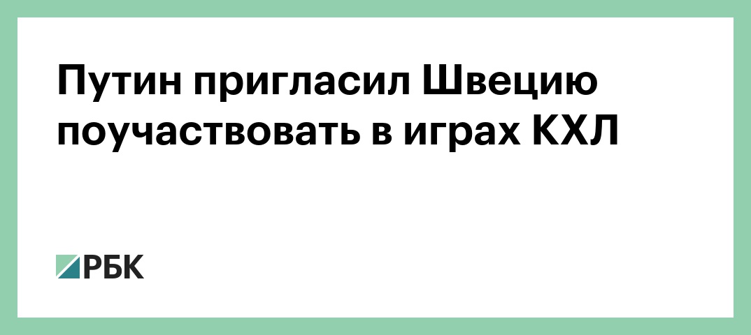 «Было бы хорошо, господин премьер-министр, если бы один из ваших клубов принял бы участие в играх Континентальной хоккейной лиги», — сказал Путин, обращаясь к шведскому премьеру Стефану Левену. Он добавил, что шведская сборная по хоккею радует и своих болельщиков, и российских.