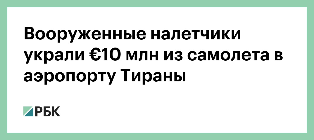 В Министерстве внутренних дел Албании сообщили, что грабители украли из самолета в общей сложности €10 млн. После того как они покинули самолет и намеревались скрыться, началась перестрелка с полицейскими, в результате которой один из грабителей был убит. Его личность пока не раскрывается.