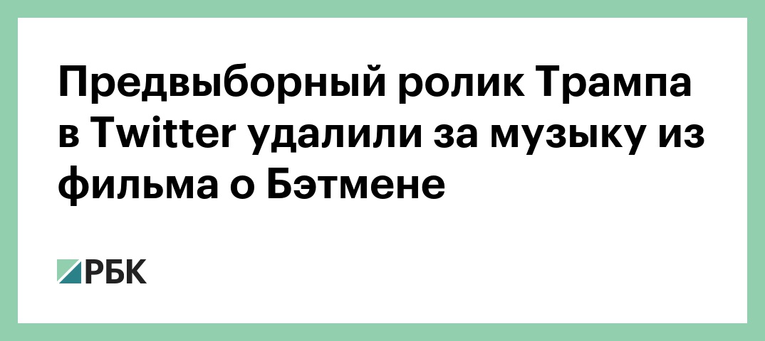 Twitter заблокировал предвыборное видео действующего президента США Дональда Трампа за использование музыки из фильма о Бэтмене «Темный рыцарь. Возрождение легенды». Об этом пишет The Hill со ссылкой на заявление компании Warner Bros. Pictures, которой принадлежат права на композицию.