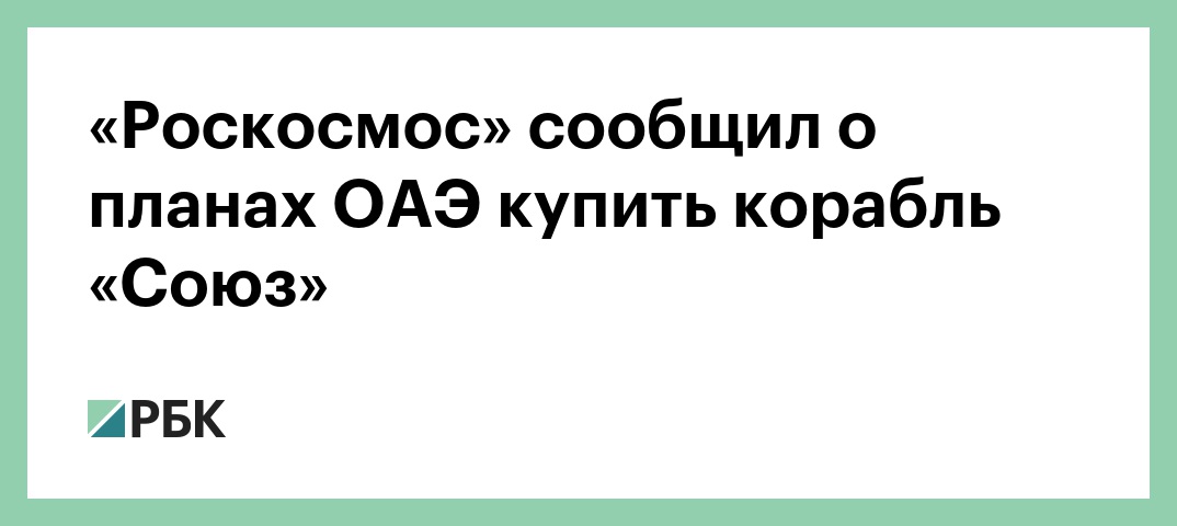 «В рамках перспективной программы полетов ОАЭ планируют организовать специализированную пилотируемую миссию, для которой потребуется корабль. Речь идет о закупке у нас корабля «Союз», — отметил он.