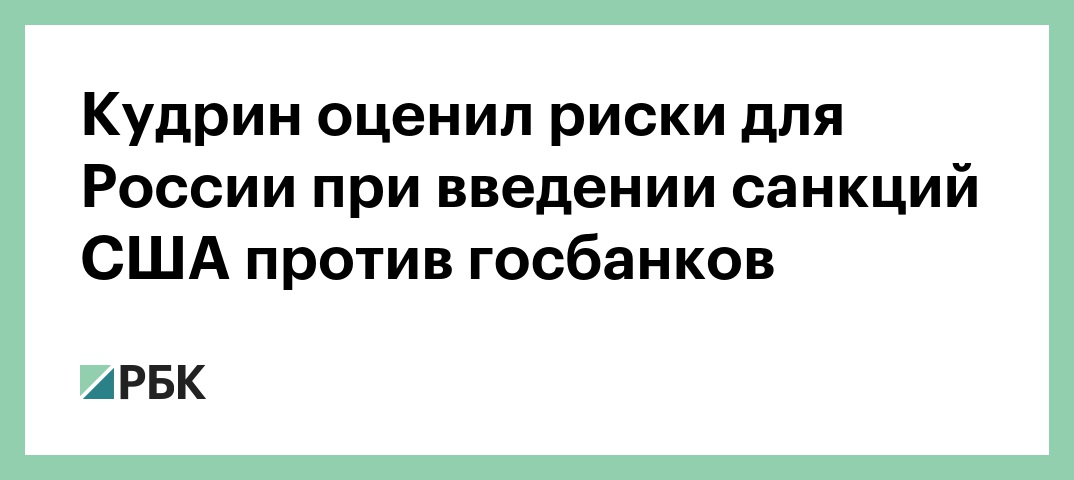 Кудрин оценил риски для России при введении санкций США против госбанков