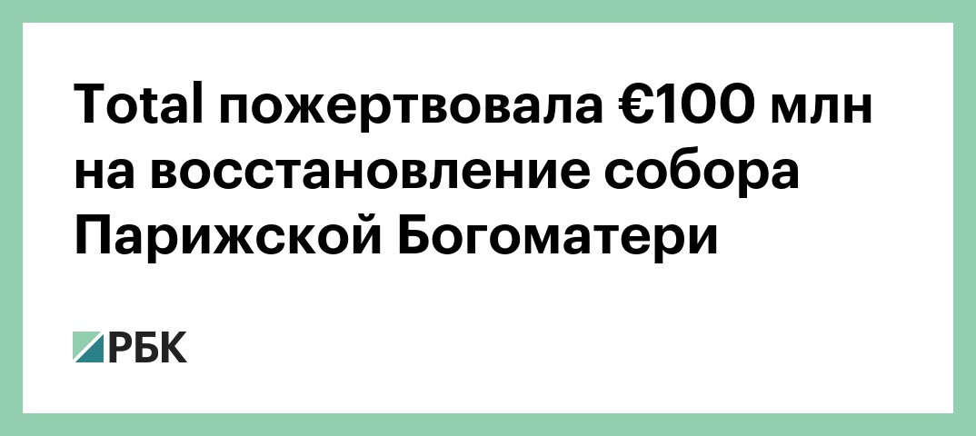 Гендиректор Total Патрик Пуянне сообщил в Twitter, что компания пожертвовала €100 млн на реконструкцию собора Парижской Богоматери, в котором накануне произошел пожар.