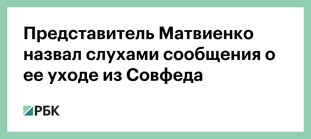 Сообщения СМИ об уходе спикера Совета Федерации Валентины Матвиенко из верхней палаты являются слухами. Об этом РБК сказал ее пресс-секретарь Владислав Пономаренко.