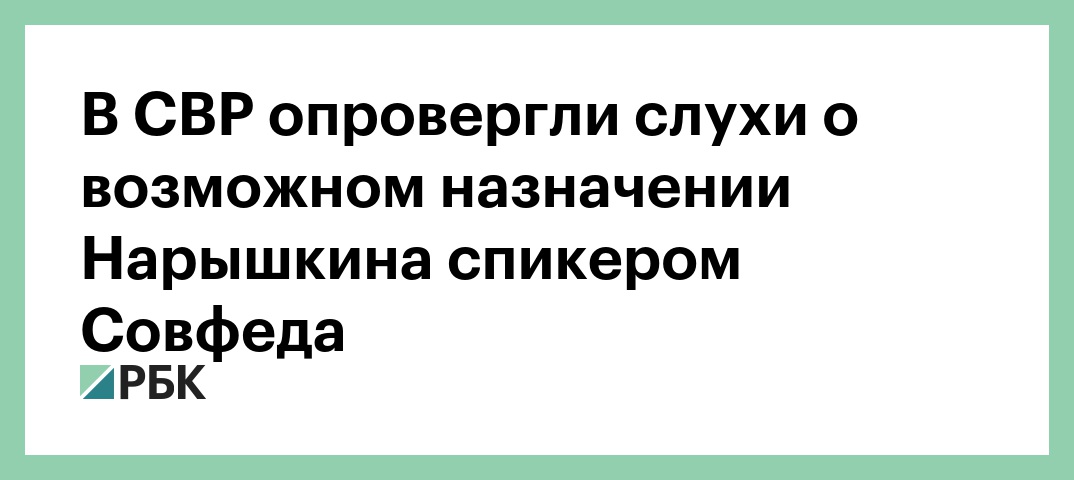 Служба внешней разведки (СВР) опровергла данные о возможном назначении главы ведомства Сергея Нарышкина на пост главы Совета Федерации. Об этом сообщает «РИА Новости» со ссылкой на официального представителя службы Сергея Иванова.