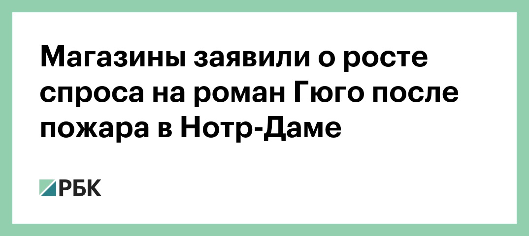 Спрос на роман французского писателя Виктора Гюго «Собор Парижской Богоматери» резко вырос за последние два дня на фоне пожара в Нотр-Дам-де-Пари. Об этом РБК рассказали в сервисе электронных и аудиокниг «ЛитРес».