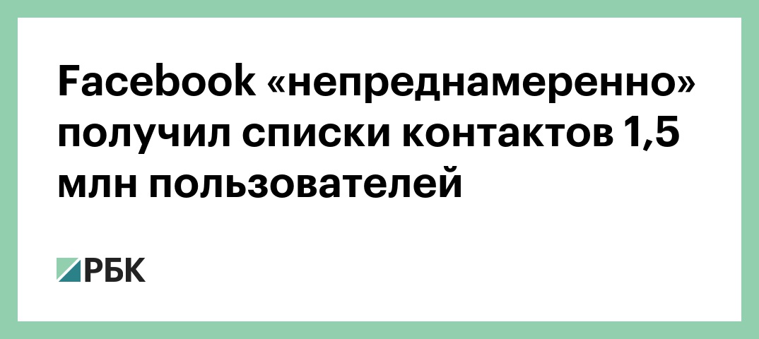 Соцсеть Facebook признала, что «непреднамеренно» получила списки контактов до 1,5 млн пользователей. Об этом сообщает Axios со ссылкой на сообщение компании.