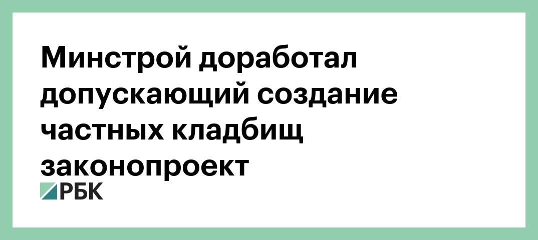 В апреле 2016 года «Коммерсантъ» писал, что Минстрой отправил на рассмотрение в правительство проект закона о похоронном деле. Туда вошла статья о необходимости лицензирования деятельности по оказанию ритуальных услуг, которая допускает создание частных кладбищ. Позднее законопроект отправили на доработку.