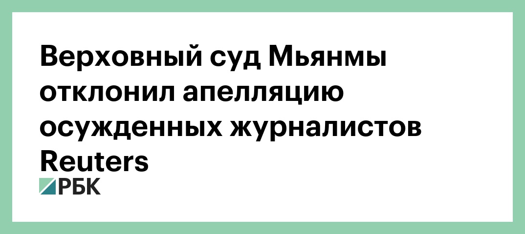 Верховный суд Мьянмы отклонил последнюю апелляцию двух журналистов Reuters, которых ранее приговорили к семи годам тюрьмы за нарушение закона о гостайне. Об этом сообщает Reuters.