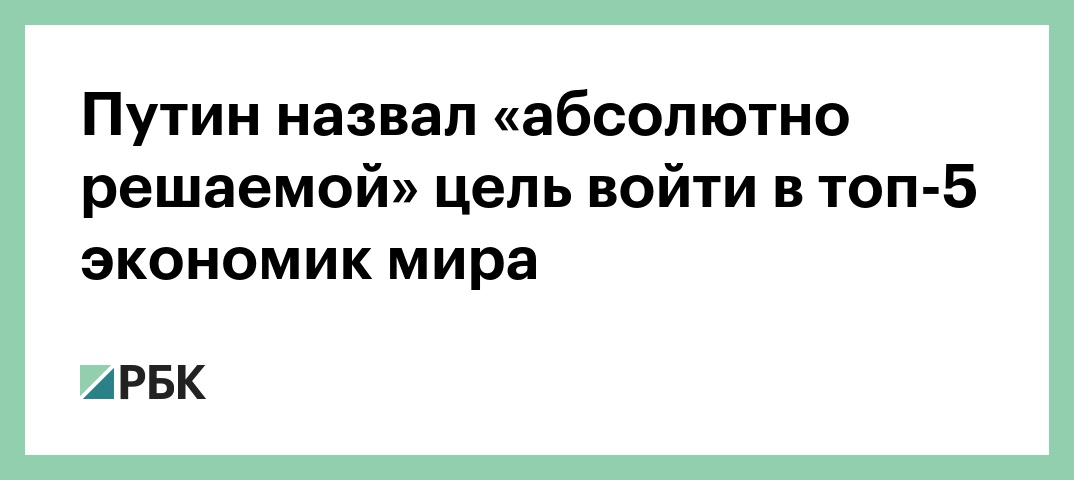 Президент Владимир Путин считает, что обозначенная для России цель войти в пятерку наиболее развитых экономик мира является «абсолютно решаемой», но для того, чтобы достичь этого, следует поднять производительность труда и улучшать структуру экономики. Об этом он заявил на встрече с членами Совета законодателей России, сообщает корреспондент РБК.