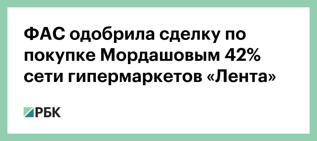 Федеральная антимонопольная служба (ФАС) одобрила сделку по покупке «Севергрупп» миллиардера Алексея Мордашова (основной актив — компания «Северсталь») 41,91% сети гипермаркетов «Лента» у TPG Group и Европейского банка реконструкции и развития (ЕБРР). Об этом пишет ТАСС со ссылкой на заявление генерального директора «Ленты» Германа Тинга.