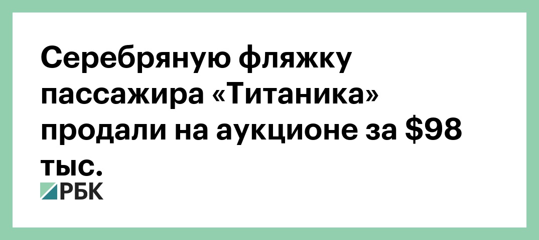 На торгах британского аукционного дома Henry Aldridge and Son продали серебряную фляжку для бренди, которую незадолго до крушения лайнера «Титаник» передали пассажиру первого класса. Об этом сообщает Би-би-си.