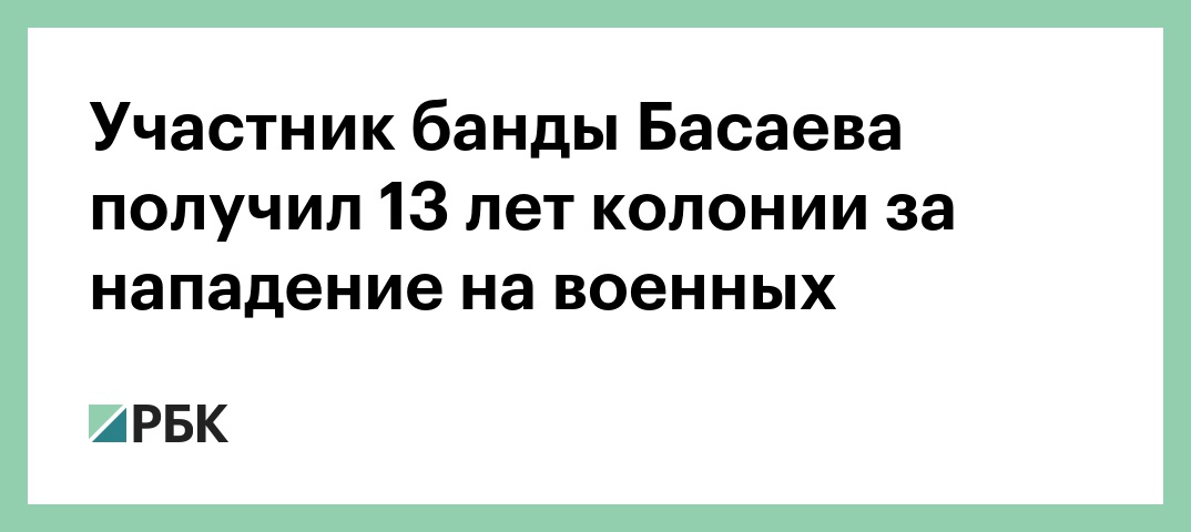 Верховный суд Дагестана приговорил Ризвана Муласанова — участника банды Шамиля Басаева и Эмира Хаттаба — к 13 годам колонии строгого режима, сообщает Следственный комитет. Его признали виновным по ст. 317 УК (посягательство на жизнь военнослужащих).