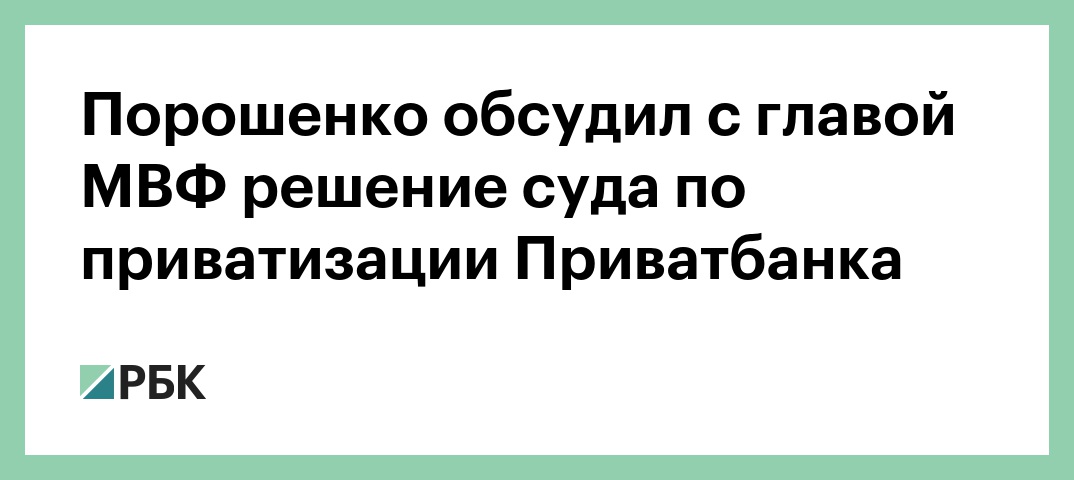 18 апреля окружной административный суд Киева заключил, что национализацию Приватбанка провели с нарушением действующего законодательства. Таким образом, суд встал на сторону бывшего совладельца банка Игоря Коломойского. В связи с этим Порошенко заявил, что если Приватбанк вернут Коломойскому, то на Украине может наступить дефолт.