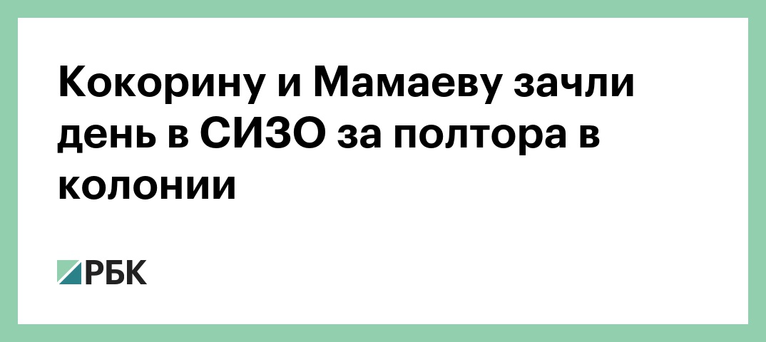 Кокорину и Мамаеву зачли день в СИЗО за полтора в колонии