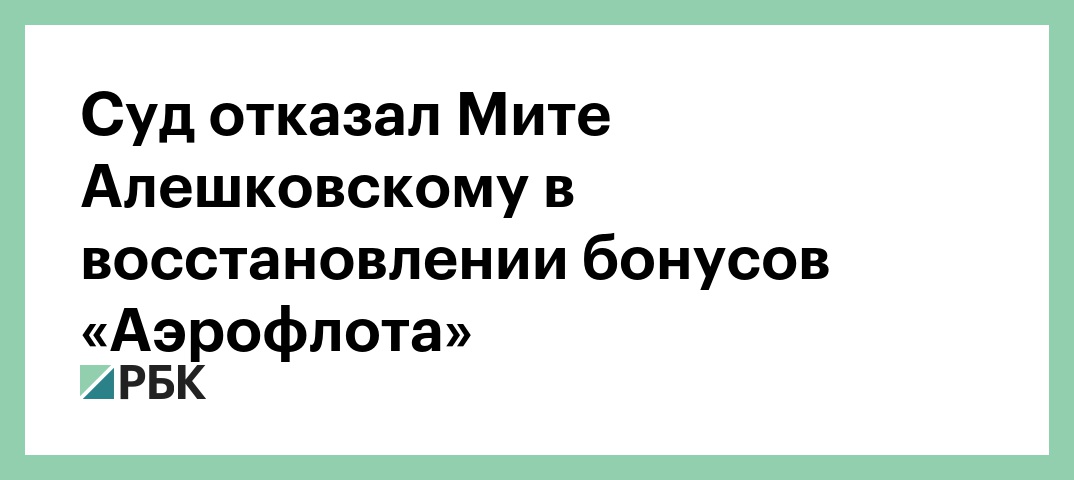 Пресненский суд Москвы отказал журналисту и общественному деятелю Дмитрию (Мите) Алешковскому по иску о восстановлении его платинового статуса и накопленных миль в бонусной программе «Аэрофлота». Об этом РБК сообщил пресс-секретарь суда Алексей Черников.