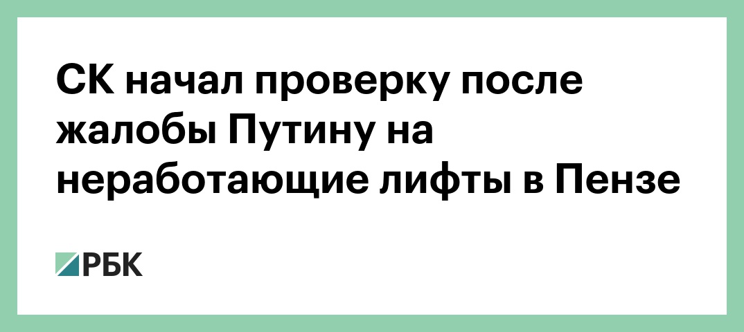 СК начал проверку после жалобы Путину на неработающие лифты в Пензе