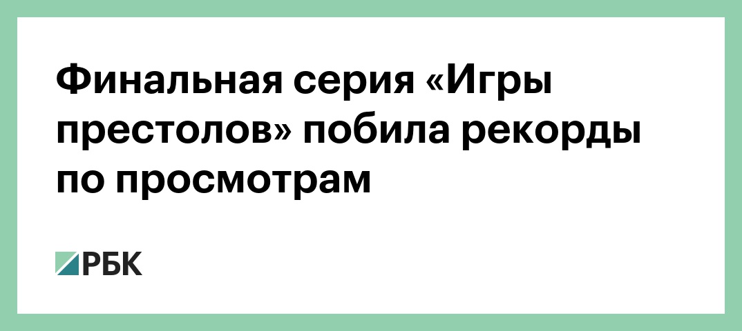 Предыдущий рекорд составлял 18,4 млн просмотров — столько зрителей посмотрело пятый эпизод финального сезона. Просмотр последнего сезона доступен для подписчиков HBO Now или HBO Go, а также для пользователей платформ, с которыми сотрудничает телеканал.