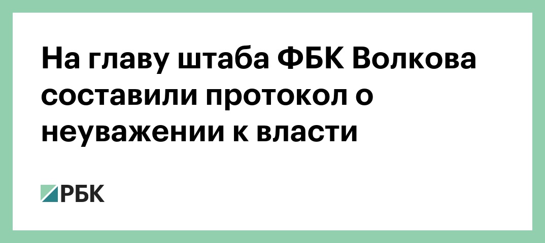 На главу штаба основанного Алексеем Навальным Фонда борьбы с коррупцией (ФБК) Леонида Волкова составили протокол о неуважении к обществу, государственным символам и органам власти. Об этом РБК сообщил директор ФБК Иван Жданов.