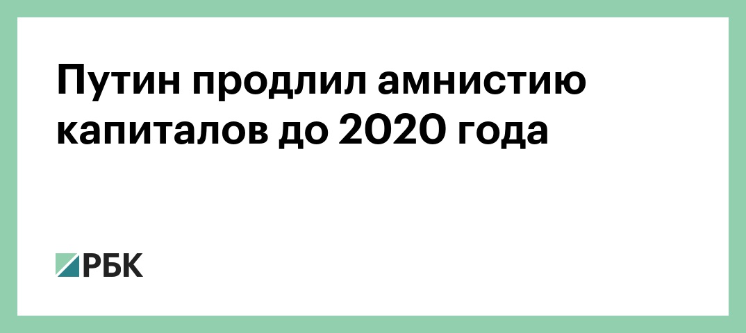 Действующая амнистия капиталов завершилась 1 марта текущего года. В феврале Путин предложил продлить ее на год для тех, кто переводит бизнес в Россию и регистрирует его в специальных административных районах. По его словам, при этом предприниматели «освобождаются от ответственности за ряд правонарушений экономического, валютного и налогового законодательства».