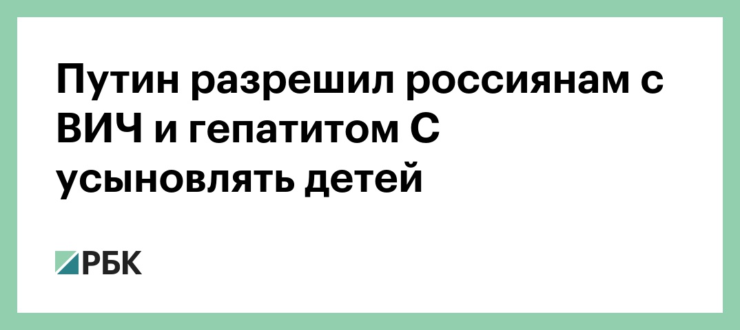 Президент России Владимир Путин подписал закон, разрешающий больным ВИЧ и гепатитом С усыновлять детей. Документ опубликован на портале правовой информации.