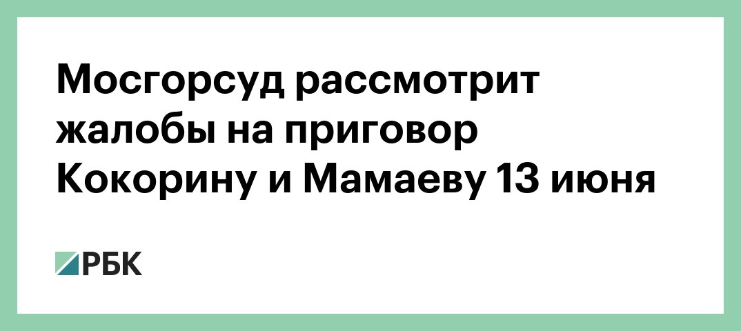 Мосгорсуд рассмотрит жалобы на приговор Кокорину и Мамаеву 13 июня