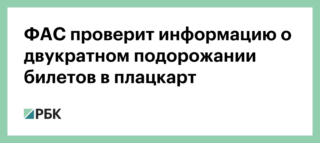 ФАС проверит информацию о двукратном подорожании билетов в плацкарт