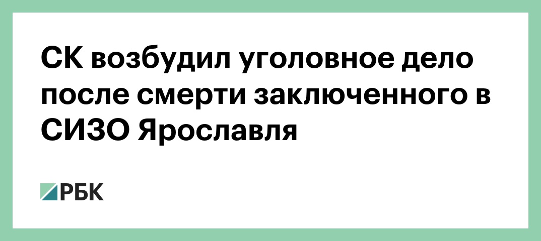 Следственное управление СКР по Ярославской области возбудило уголовное дело по факту смерти заключенного Александра Сидякина в СИЗО № 1 Ярославля. Об этом РБК сообщили в пресс-службе управления. Дело возбуждено по признакам состава преступления, предусмотренного ч. 1 ст. 110 УК РФ (доведение до самоубийства)».
