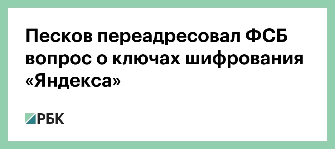 Пресс-секретарь президента Дмитрий Песков не стал комментировать данные о том, что ФСБ запросила ключи шифрования данных пользователей у «Яндекса», передает корреспондент РБК.