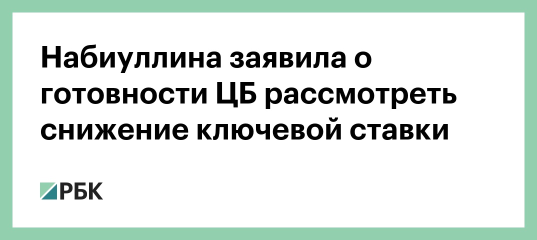 Набиуллина заявила о готовности ЦБ рассмотреть снижение ключевой ставки