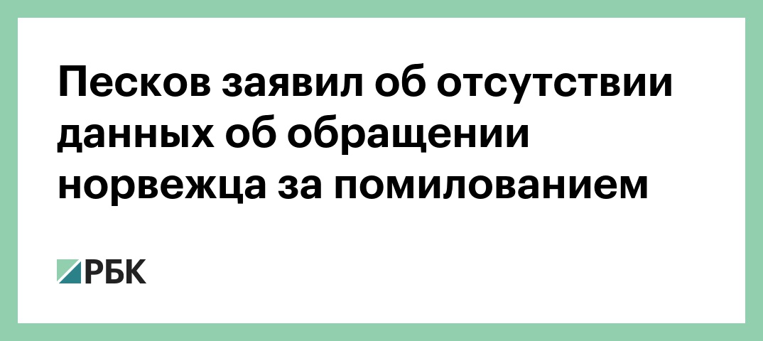 Песков заявил об отсутствии данных об обращении норвежца за помилованием