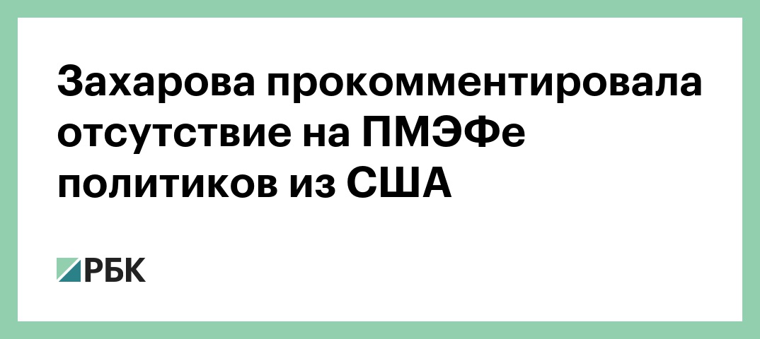 Официальный представитель МИД России Мария Захарова прокомментировала отсутствие американских политиков на ПМЭФ-2019. Об этом она сообщила в эфире телеканала RT.