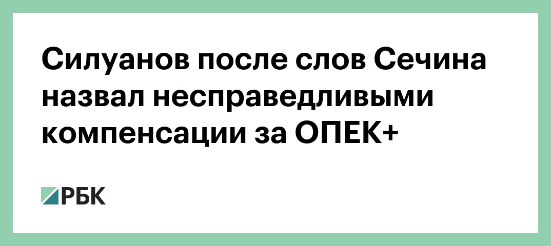 «Поэтому я считаю, что здесь говорить о компенсации совсем несправедливо», — сказал Силуанов, комментируя слова главы «Роснефти» Игоря Сечина о переговорах по компенсации за сделку ОПЕК+.
