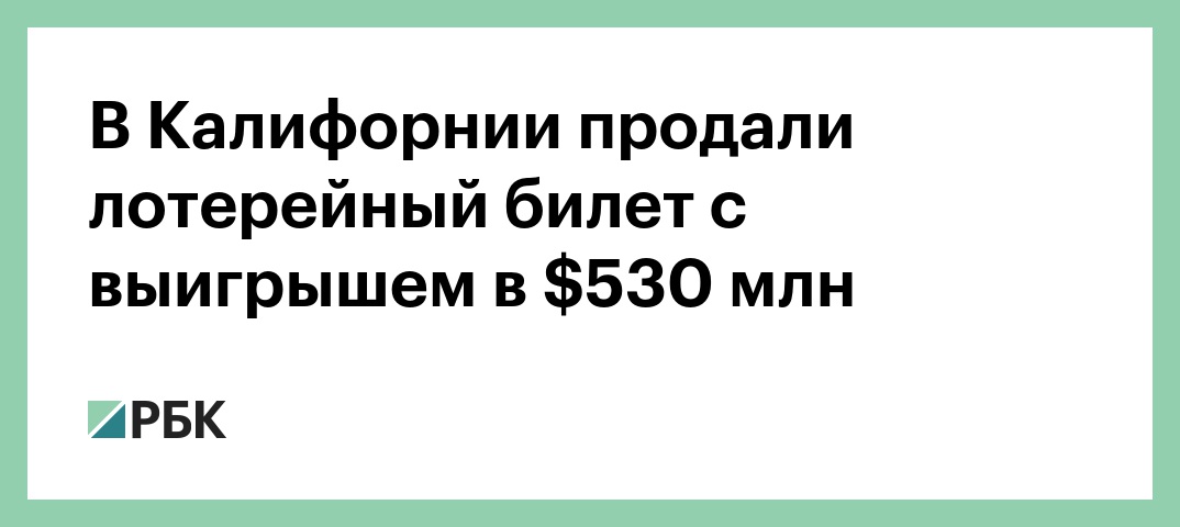 В Калифорнии в рамках розыгрыша лотереи Mega Millions продали билет, на который выпал выигрыш в размере $530 млн, сообщает CNN.