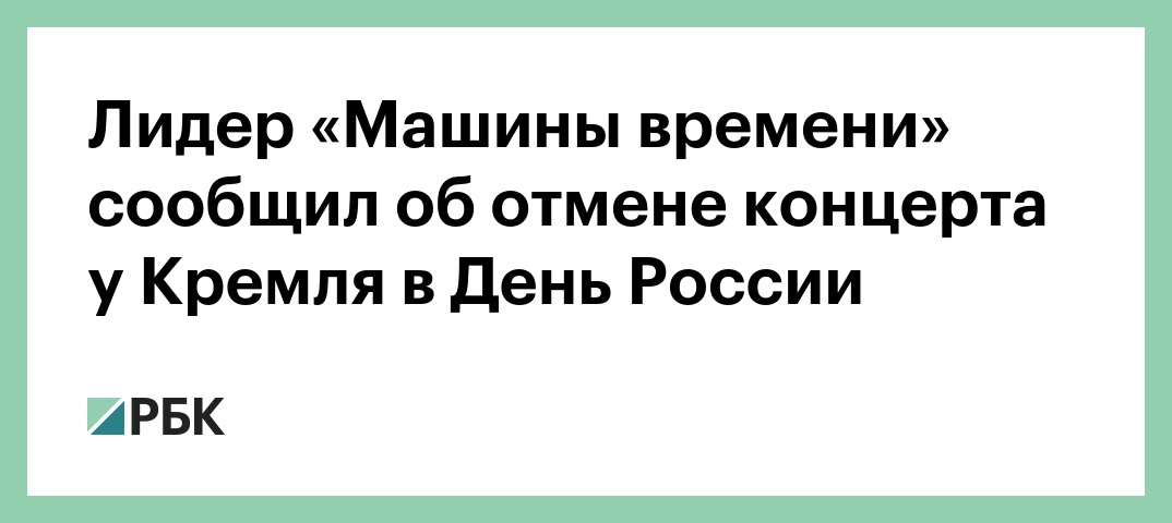 Лидер «Машины времени» сообщил об отмене концерта у Кремля в День России