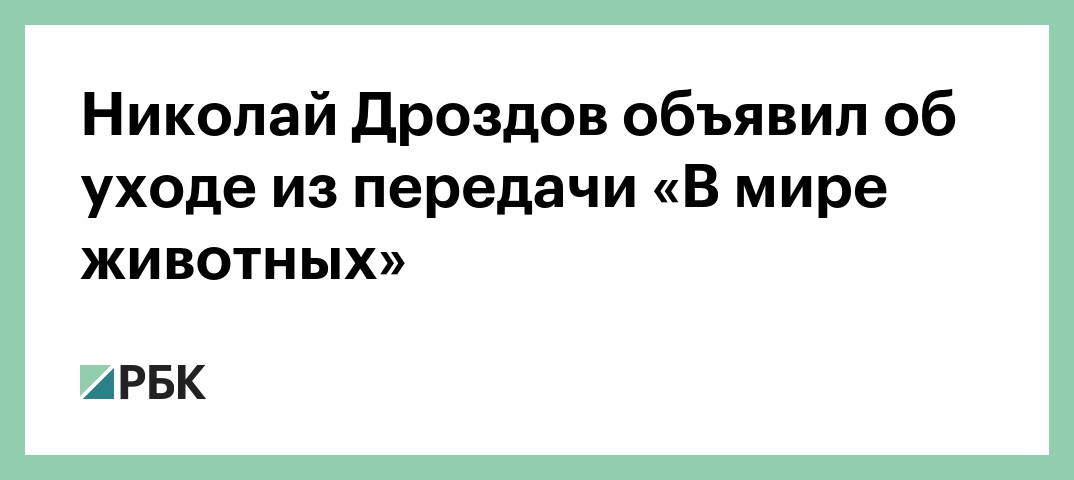 Телеведущий и биолог Николай Дроздов сообщил в интервью «Комсомольской правде», что больше не снимается в передаче «В мире животных» и не планирует возвращаться на телевидение. По его словам, последнее время он не получал деньги за передачу, которую вел более 40 лет.